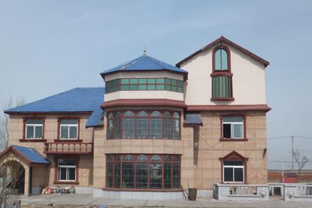 主體為砂巖涂料,墻裙為真石漆。真石漆的仿大理石效果,突出了別墅的厚重感!而砂巖涂料的藝術效果則增加了整體的裝飾效果!