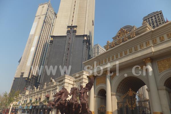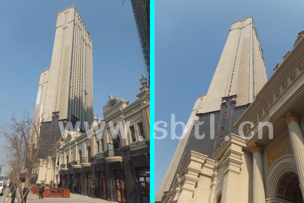 位于沈陽渾南新區的萬達公館,秉承了萬達以城市中心為發展的理念;樓盤緊鄰沈陽地鐵二號線營盤街站出口,交通便利,是渾南新區的地標性建筑;采用巖片真石漆作為外墻裝飾的主材,而巖片真石漆的造價要比普通的沙面真石漆高出很多,但仿天然花崗巖的效果非常好;應用巖片真石漆即減少了天然花崗巖大量開采后對環境破壞,又可以達到外墻裝飾與保護的效果。