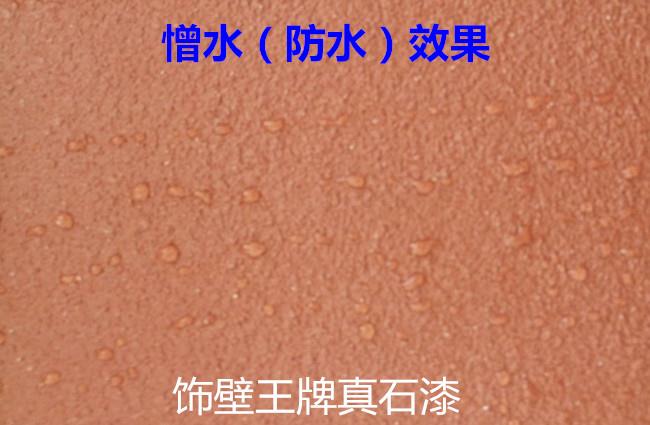真石漆阻燃且耐水性強,吸水率低,水中長期浸泡不會開裂脫落,手感堅硬。表面張力大、具有明顯的斥水性,不易吸塵、不易污染,高檔真石漆沾上墨水后可以用水沖洗干凈。