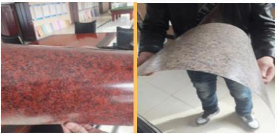 產品特點:產品可以直接帖在墻面成材,是外墻仿石涂料的最前沿產品,通過先進的復合技術將仿石涂料涂、砂巖涂料、木紋涂料、金屬涂料、藝術質感涂料等飾于柔性基材從而達到可柔性彎曲的目的。薄石片材具有施工簡便、質輕、工廠化生產的特點,運輸到工地僅用配套專用不可再生性的柔性粘接劑粘貼即可,且施工時不受氣候影響,大大降低了現場施工難度,提升了質量穩定性,保障了施工安全性,減少了現場施工的各種繁瑣。還可用于圓柱、異形件、保溫板和輕質結構墻板等表面的粘貼。