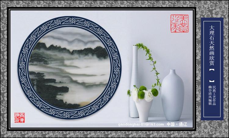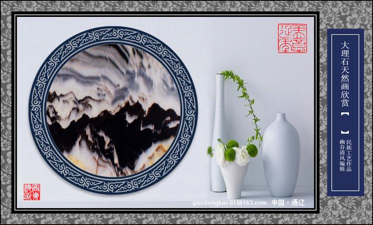 大理石畫之名貴,除礦帶狹窄,資源稀少,開采艱難外,主要在于大理石自身所具有的非凡美學格調(diào)。大理石畫中的水墨花石以黑白兩個極色為基調(diào),素雅脫俗,其天然畫面的意境,與中國傳統(tǒng)水墨畫極為神似,在表現(xiàn)形式上,水墨畫的勾皴點染,濃淡干濕,虛實疏密,潑墨留白等設色枝法以及以小觀大,尺幅千里的構圖和透視方式都不謀而合。許多天然墨痕,均為神來之筆,其渾厚高古的格調(diào),令諸多的文人墨客為之傾倒。